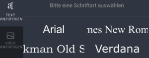 3.) Nach einen Klick auf den „Text hinzufügen“-Button können Sie eine der folgenden Schriftarten auswählen