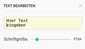 4.) In dem sich öffnen Fenster können Sie den gewünschten Text eingeben; mit der Enter-Taste wechseln Sie in die nächste Zeile. Über den Schieberegler können Sie die Schriftgröße einstellen