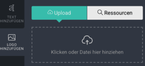 6.) Wenn Sie noch ein Logo hinzufügen möchten, klicken Sie bitte auf den Button „Logo hinzufügen“ und klicken Sie auf die Schaltfläche oder ziehen Sie eine Bilddatei auf die Schaltfläche (Dateiformat: JPEG/JPG oder PNG, max. 1500×1500 Pixel, max. 8MB Dateigröße)
