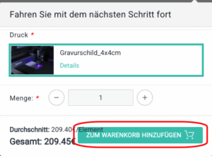 7.) Sind Sie mit der Gravur fertig, klicken Sie bitte rechts oben auf „Fortfahren“ und klicken Sie im sich öffnenden Fenster auf „Zum Warenkorb hinzufügen“.