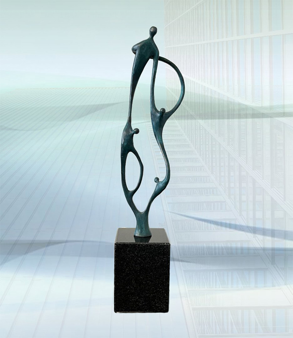 Bronzeskulptur „Zukunft durch Zusammenarbeit“