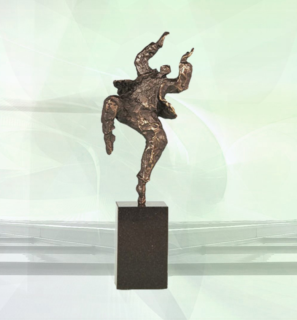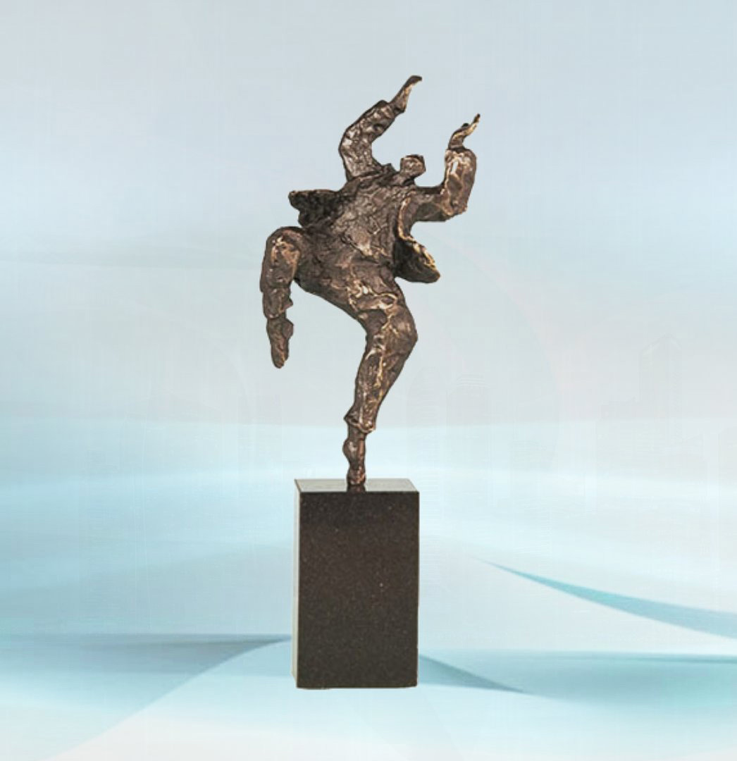 Dieses Kunstwerk gehört nicht umsonst zu den beliebten Skulpturen für Wohnzimmer und Wohnung. Der Protagonist tanzt, lacht und hüpft. Mit einem positiven Gefühl sieht er der Zukunft entgegen und zeigt eindrucksvoll seine Freude über das Erreichte.