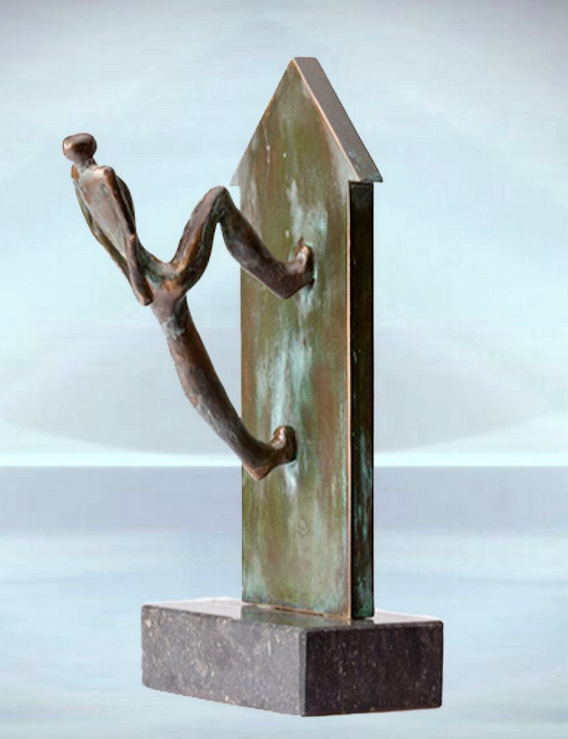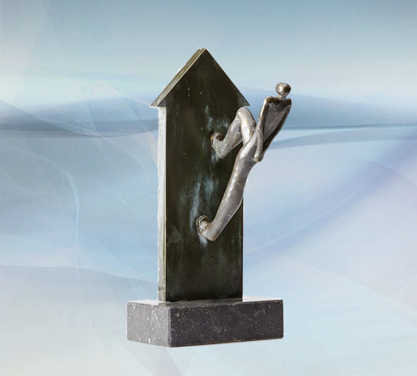 Für diesen bahnbrechenden Durchbruch steht diese Skulptur. Der nach oben weisende Pfeil bildet dabei die Spitze dieser Errungenschaften. Ein innovativer Unternehmensfortschritt mit nachhaltigen Erfolgsfaktoren resultiert aus der unschlagbaren Kraft eines Einzelnen, der mit entschlossenen Schritten das Unmögliche erreicht.