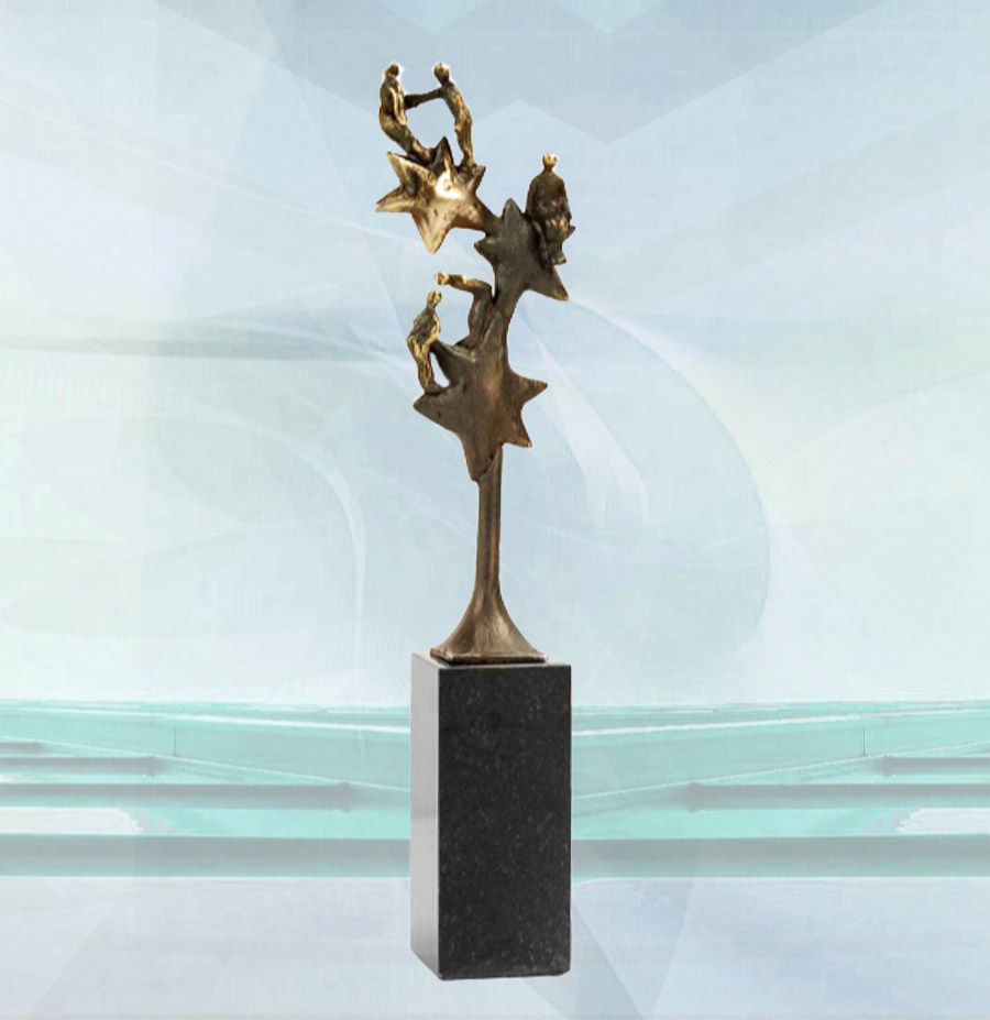 Mit einem ausgeprägten Gemeinschaftsgeist zeigt die Skulptur „Für den besten Teameinsatz“ das starke Fundament zusammenwirkender Menschen, die mit ihrem ganzen Einsatz für Unternehmensziele einstehen und zu bedeutsamen Persönlichkeiten heranreifen.