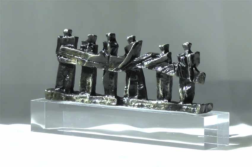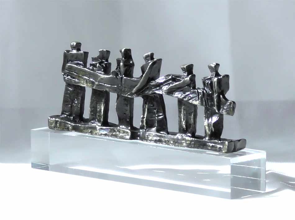 Diese Skulptur unterstreicht die hohe Bedeutung leistungsstarker Mitarbeiter im Unternehmen. In Form eines „gemeinsamen Beitrags“ meistern diese motivierten Akteure alle nur denkbaren Herausforderungen und bringen ihre Projektarbeit erfolgreich auf den Weg.