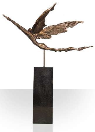 Diese stilvolle Kunstskulptur steht für hohe Zielsetzungen und exzellente Leistungen. Sie zeigt eindrucksvoll auf, dass man mit der richtigen Einstellung und einer konstanten Beharrlichkeit stets Rückenwind hat und letztlich auf goldenen Flügeln zum gewünschten Ziel getragen wird.