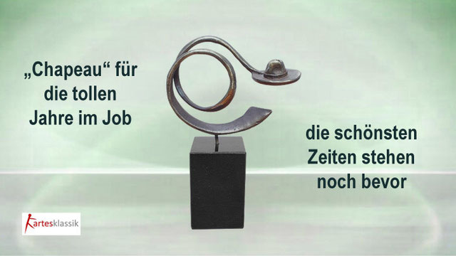 Wichtig ist eine persönliche Geste, die der künftige Pensionär nachhaltig verinnerlicht. Neben einer Karte oder Rede rundet die Wahl eines passenden Präsents das zukunftsweisende Ereignis ab. Unsere Skulpturen sind für diesen Anlass hervorragend geeignet. Sehen Sie sich einfach bei uns im Shop nach einem passenden Kunstwerk um.